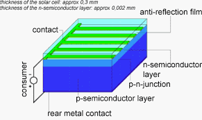 These solar cells are built such that the n region of the cell is thin and the junction has the maximum area. This allows a maximum radiation gain from sunlight to the cell.